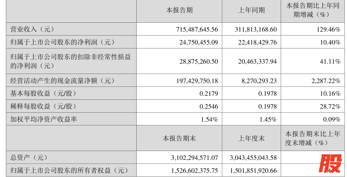 中证智能财讯浩通科技(301026)4月26日披露2025年第一季度报告。公司实现营业总收入7.15亿元,同比增长129.46%;归母净利润2475.05万元,同比增长10.40%;扣非净利润2887.53万元,同比增长41.11%;经营活动产生的现金流量净额为1.97亿元,同比增长2287.22%;报告期内,浩通科技基本每股收益为0.2179元,加权平均净资产收益率为1.54%。