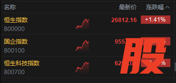 9月17日消息,港股三大指数集体上涨。截至午间收盘,恒生指数涨1.41%,报26812.16点,恒生科技指数涨3.49%,国企指数涨1.78%。盘面上,科网股全线上涨,百度涨超15%,京东、美团、阿里巴巴涨超5%,快手、腾讯、联想涨超2%,哔哩哔哩、小米涨超1%;锂电池股涨幅居前,宁德时代涨超5%;芯片股走强,中芯国际涨超5%;汽车股普涨,蔚来涨超10%;黄金股集体下跌,灵宝黄金跌超4%;健康160上市首日涨近150%。
