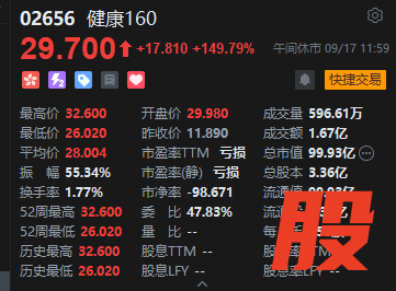 健康160上市首日涨近150%。公开发售部分,健康160超额认购达751.77倍,共接获约6.96万份有效申请,最终受理申请数目约8847份,申购一手的中签概率约为8%。国际配售部分则获得1.92倍认购,最终发售股份数目为3028.08万股,占全球发售股份总数的90%。